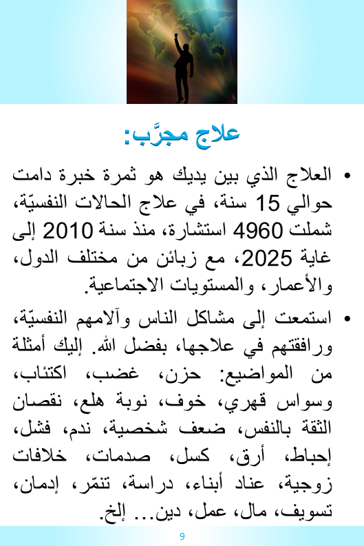 وبمعادلةٍ عميقة وبسيطة، ستتمكّن من أن تكون الطبيب النفسي لنفسك ولغيرك.